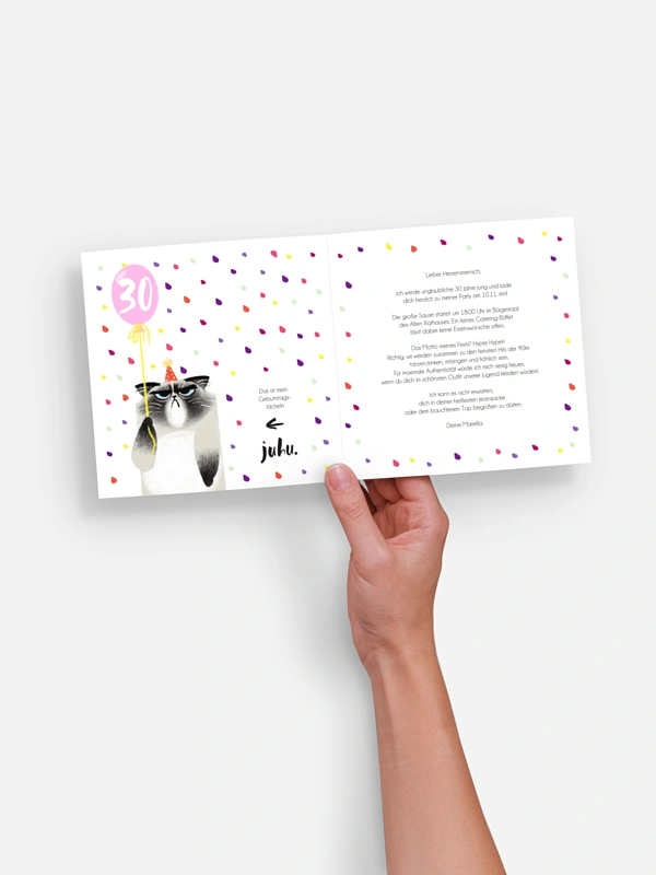 Gibt es einen besseren Weg, Ihren Gästen Lust auf die anstehende Party zu machen, als ein Lachen? Mit der originellen Karte "Not Amused" laden Sie auf humorvolle Weise zu Ihrer Geburtstagsfeier ein.