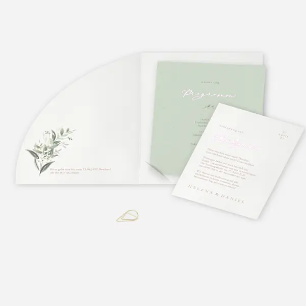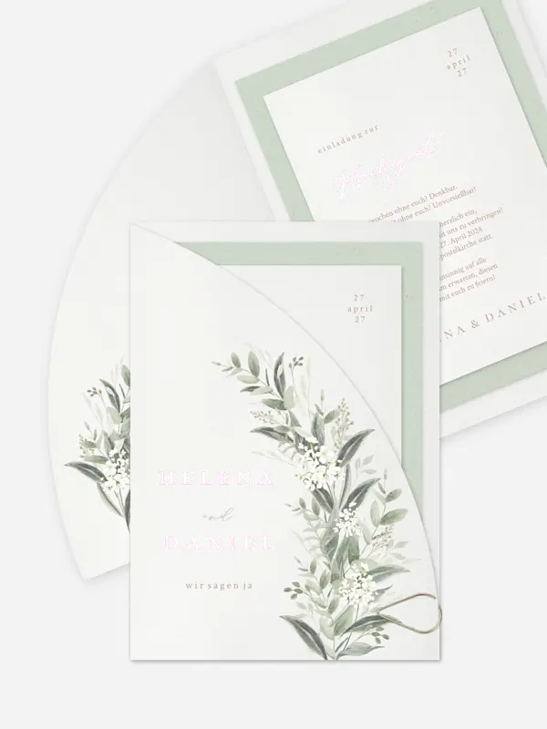 Handgemalte Greenery-Elemente bilden den Fokus auf der Hochzeitseinladung "Beauty of Nature".