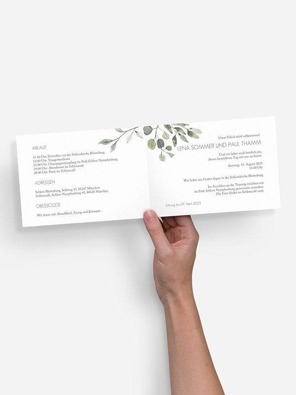 - Innenseiten: 1 Doppelseite für das Brautpaar, 2 unterschiedliche Doppelseiten für die Hochzeitsgäste, für Hochzeitspaare jeden Geschlechts geeignet.