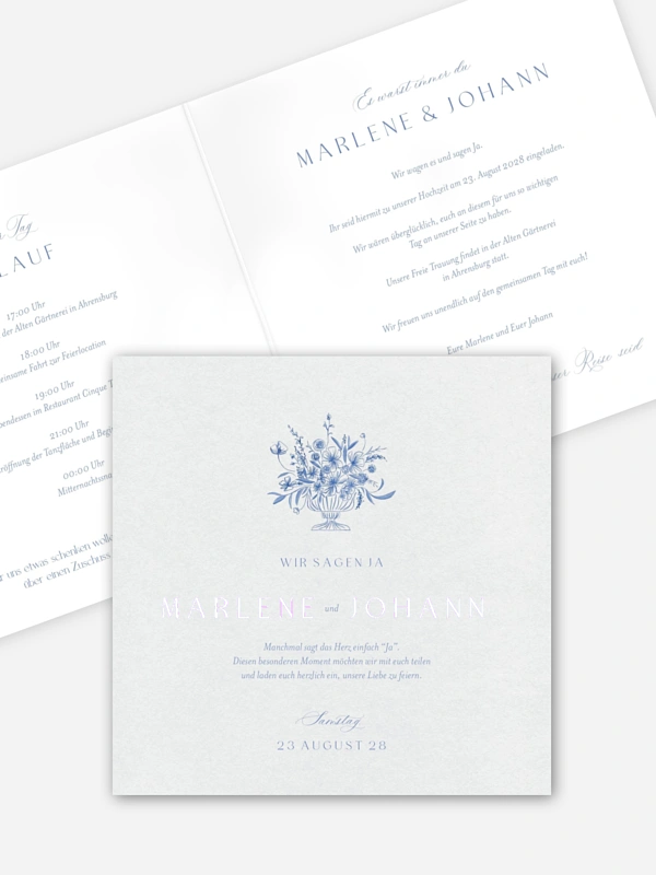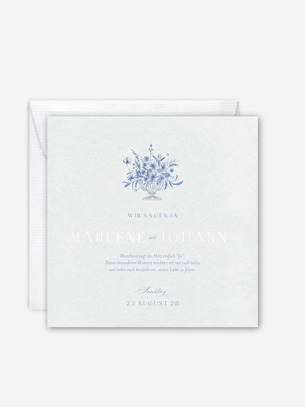 Zarte Blüten und Blätter stehen im Zentrum der stilvollen Hochzeitseinladung "Fine Florals".