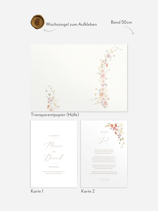 - Innenseiten: 1 Doppelseite für das Brautpaar, 2 unterschiedliche Doppelseiten für die Hochzeitsgäste, für Hochzeitspaare jeden Geschlechts geeignet.