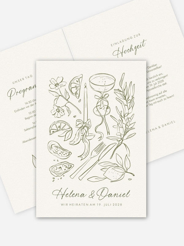 Mit der Hochzeitseinladung "Mediterran" laden Sie Ihre Gäste modern und stilsicher zur Trauung ein.