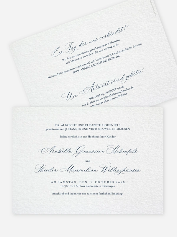 Mit der Hochzeitseinladung "Pure Elegance" verbinden Sie eine praktische Einladung mit stilvoller Eleganz.