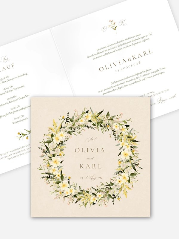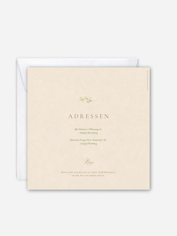 Zarte Blüten und Blätter stehen im Zentrum der stilvollen Hochzeitseinladung "Summer Petals".