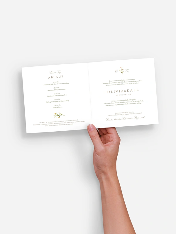„Es war alles perfekt! Die Qualität der Karten und Umschläge ist erstklassig, das Druckbild hervorragend und der Service bestens.“ (Familie Hübner)
