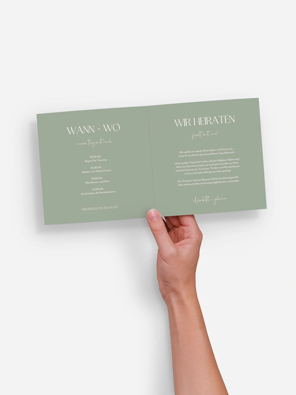 „Es war alles perfekt! Die Qualität der Karten und Umschläge ist erstklassig, das Druckbild hervorragend und der Service bestens.“ (Familie Hübner)