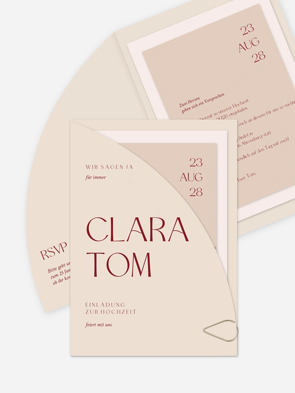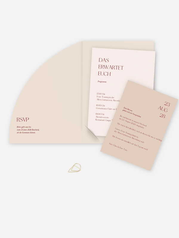 Die Hochzeitseinladung „Traumtag“ vereint klare Typografie mit einem modernen, zeitlosen Stil – perfekt für Paare, die ihr Ja-Wort mit schlichter Eleganz feiern möchten. Sie lädt eure Gäste herzlich ein, diesen besonderen Moment mit euch zu teilen. Auf hochwertigem Papier gedruckt, entsteht ein edles, ruhiges Gesamtbild, das Raum für eure Geschichte lässt. Dank der schnellen Lieferung und der einfachen Gestaltung online wird eure Einladung im Handumdrehen zu etwas ganz Persönlichem. Gestalte jetzt dein Set direkt online.