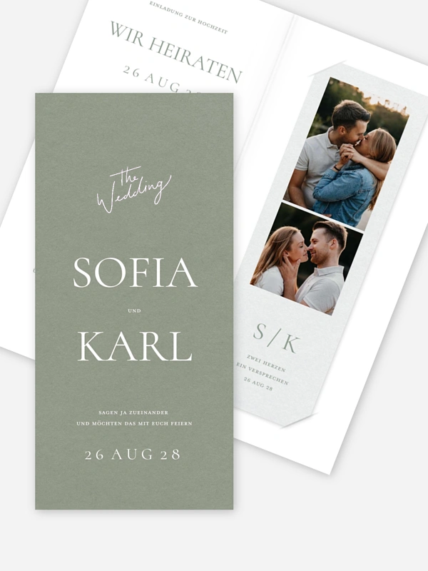 - Innenseiten: 1 Doppelseite für das Brautpaar, 2 unterschiedliche Doppelseiten für die Hochzeitsgäste, für Hochzeitspaare jeden Geschlechts geeignet.