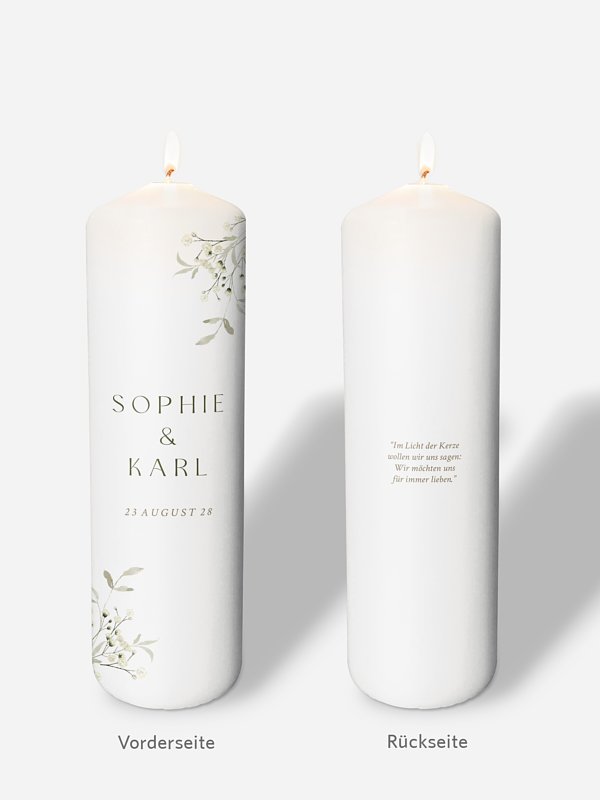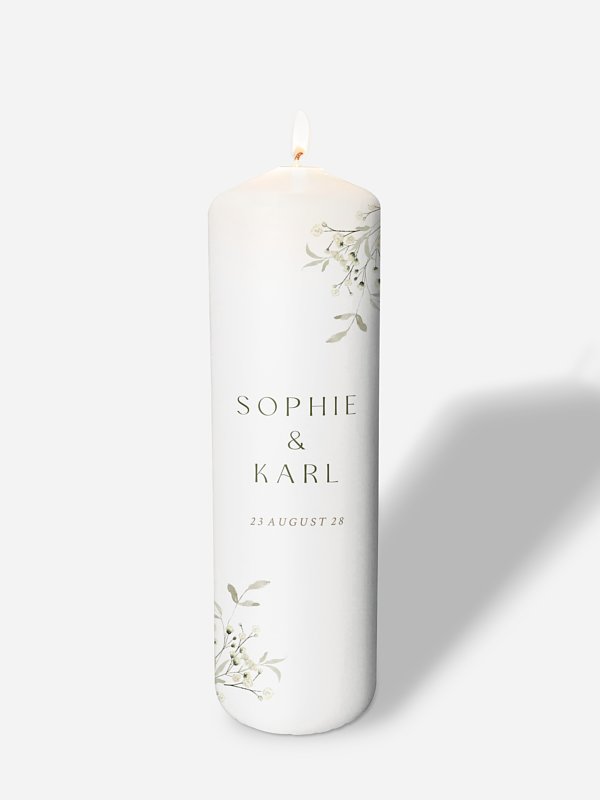 Ideal für das Ritual der Hochzeitskerze bei Ihrer freien Trauung: Die personalisierbare Kerze "Love in Bloom" ist ein bleibendes Erinnerungsstück.
