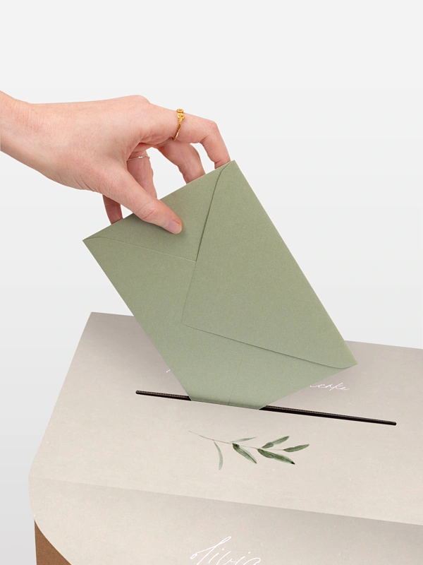 Die Kartenbox Hochzeit "Green Dream" ist die perfekte Begleiterin für euren großen Tag. In ihr finden all die lieben Glückwünsche und kleinen Überraschungen eurer Gäste einen sicheren Platz – schön gesammelt und mit einem Lächeln geöffnet. Das zarte Design fügt sich harmonisch in eure Hochzeitsdekoration ein und macht die Box zu einem besonderen Detail eurer Feier. Mit der gewohnt hochwertigen Verarbeitung von kartenmacherei wird sie zu einem Erinnerungsstück, das euch noch lange Freude bereitet.