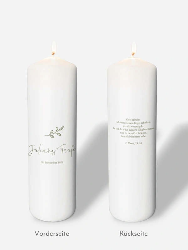 Wir empfehlen, eine dunkle Schriftfarbe zu wählen, da helle Varianten auf der weißen Kerze nicht gut zu erkennen & zu lesen sind.