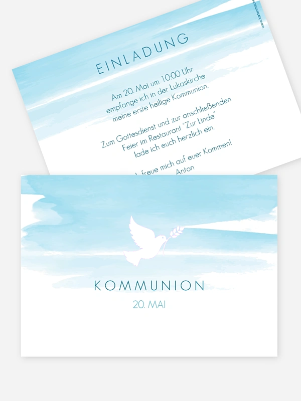 Verträumt, schlicht und in wunderschön pastelligen Farbtönen. Die Einladungskarte "Aquarellblid" wird einen bleibenden Eindruck bei den geladenen Gästen hinterlassen.