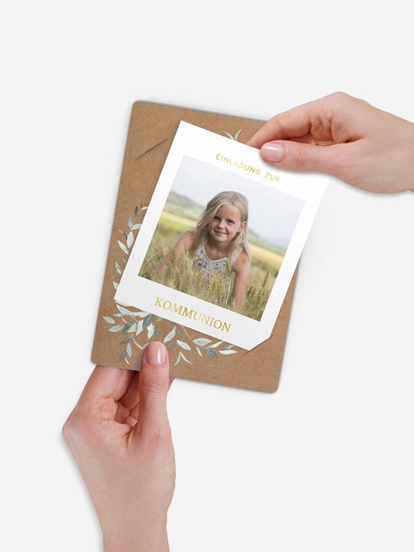 Kommunionseinladung Elegant Leaves