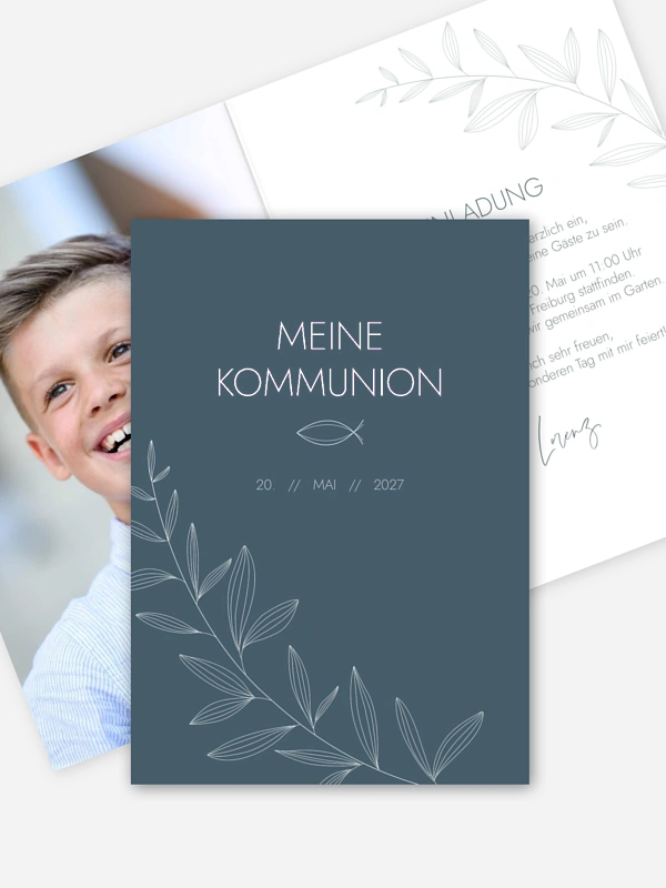 Zu einer so zauberhaften Einladung wird sicher kein Gast nein sagen: die Kommunionskarte "Modern Fish".