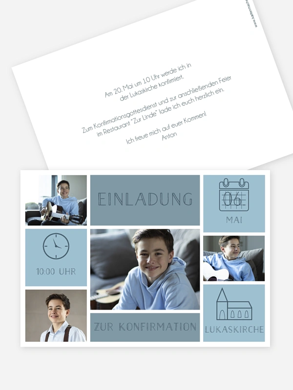 Du bist einmalig! Dementsprechend solltest du auch nicht mit einer 0815 - Karte zur Konfirmation einladen, sondern mit unserem originellen Design "Einzelstück"!
