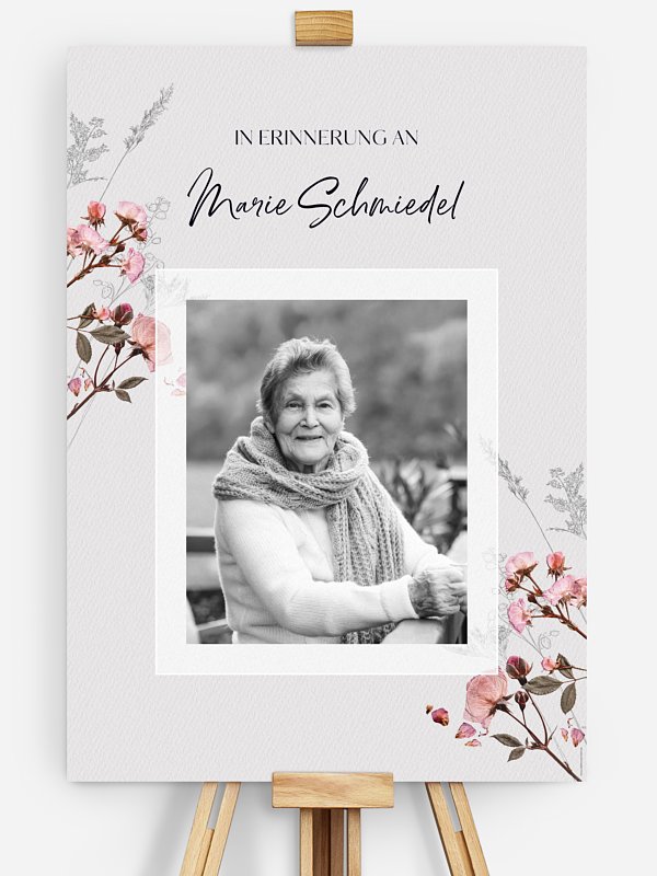 Das stilvolle Trauer-Poster gedenkt Ihrem geliebten Verstorbenen auf besonders schöne Weise.