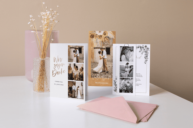 „Wir sagen Danke“ – aber mit welchem Text? Und welche Karte passt zu uns? Lasst euch für eure Dankeskarte nach der Hochzeit inspirieren!