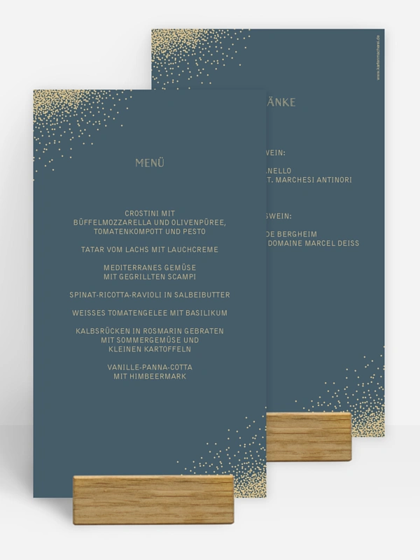 Die feinsten und leckersten Speisen wollen entsprechend präsentiert werden. Mit unseren Menükarten "Glanzvoll" kein Problem!