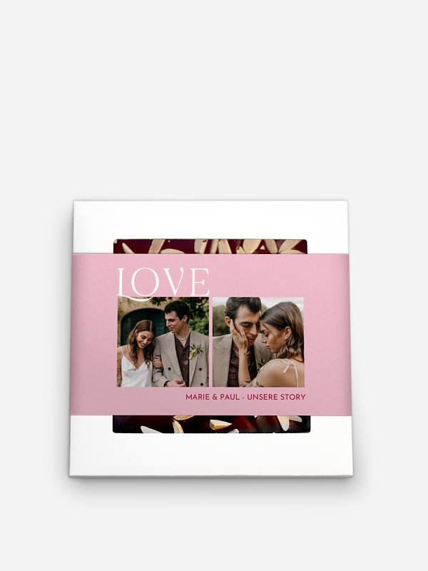 Verschenke süße Momente mit der Schokolade Valentinstag "This is Love". Diese liebevoll gestaltete Schokolade ist nicht nur ein Genuss, sondern auch eine kleine Liebeserklärung für deine Lieblingsmenschen. Mit ihren persönlichen Fotos wird sie zu einem besonders emotionalen Geschenk, das Herzen höherschlagen lässt. Einfach im Gestaltungs-Tool zu konfigurieren und schnell bei dir zu Hause – perfekt, um Freude direkt zu verschenken. Sag’s mit Schokolade und einem Lächeln!