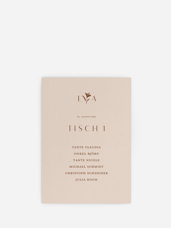 Mit dem kreativen Sitzplan "Monogram muse" führen Sie Ihre Gäste ganz einfach zu ihrem Platz. Die Karten sind beidseitig identisch bedruckt und lassen sich vielseitig in Szene setzen.