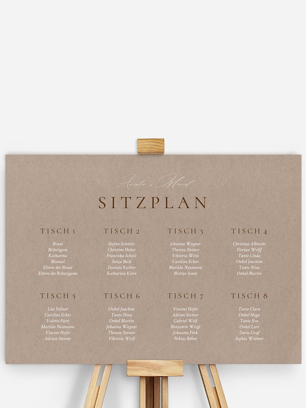 Das stilvolle Sitzplan Plakat "Mocca Moments" zeigt Ihren Gästen auf einen Blick, an welchem Tisch sie Platz nehmen dürfen – ein eleganter Empfang gleich beim Ankommen.