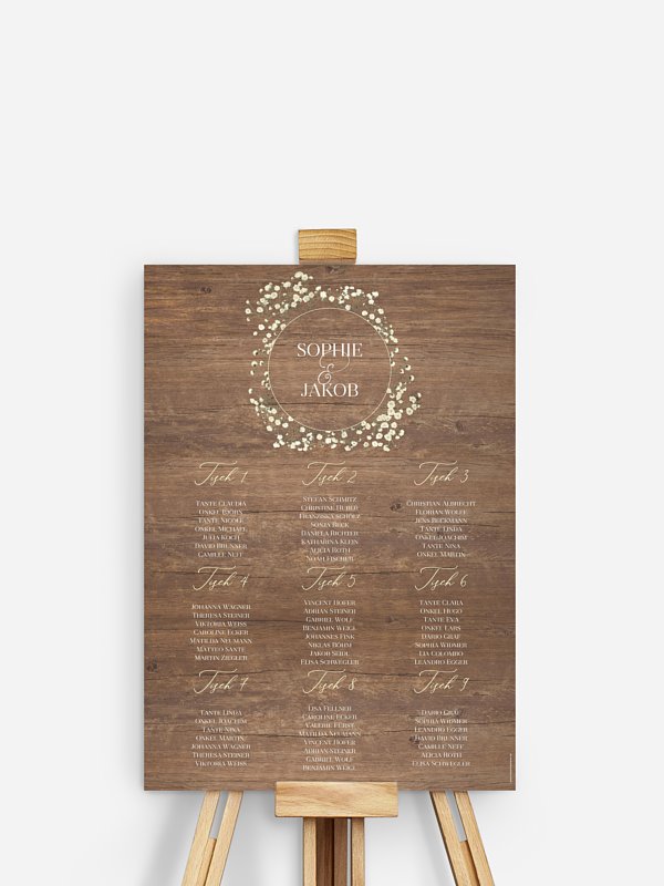 Der Sitzplan "Rustic Gypsophila" ist ein praktisches Plakat, das Ihren Gästen die Nummer ihres Tisches verrät.