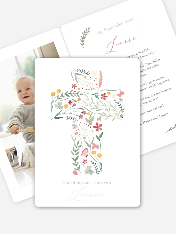 Taufeinladung Blumenkreuz
