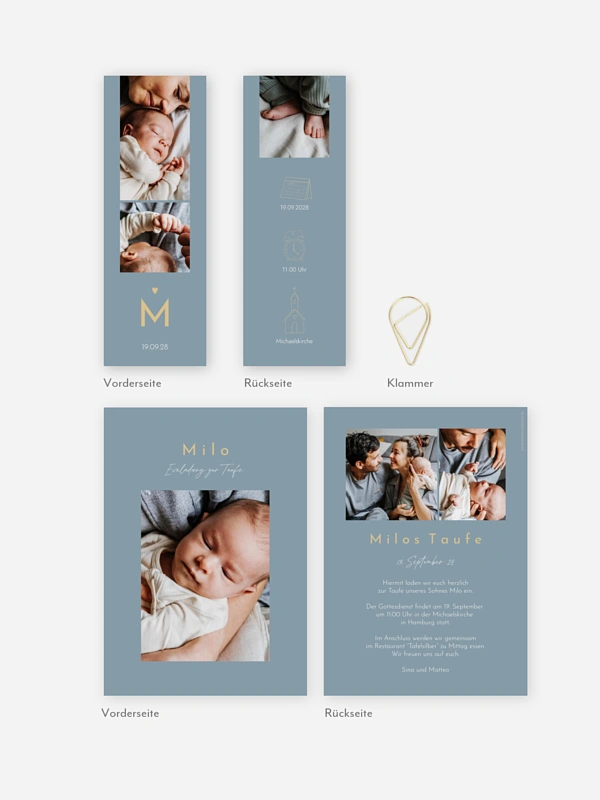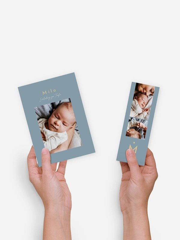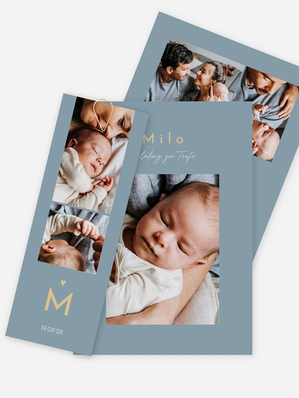 Unsere Taufeinladung "Hallo Wunder" ist eine wundervolle Art, eure Liebsten zum ersten großen Fest eures kleinen Schatzes willkommen zu heißen. Mit ihrem modernen Design bietet sie viel Platz für eure schönsten Schnappschüsse, sodass ihr die ersten magischen Momente direkt mit eurer Familie teilen könnt. Die einfache Konfiguration im Gestaltungs-Tool macht es dir leicht, persönliche Worte und alle wichtigen Eckdaten zur Taufe einzufügen. Wir sorgen mit hochwertigem Druck und einer schnellen Lieferung dafür, dass eure Taufkarten rechtzeitig und in bester Qualität bei euch eintreffen.
