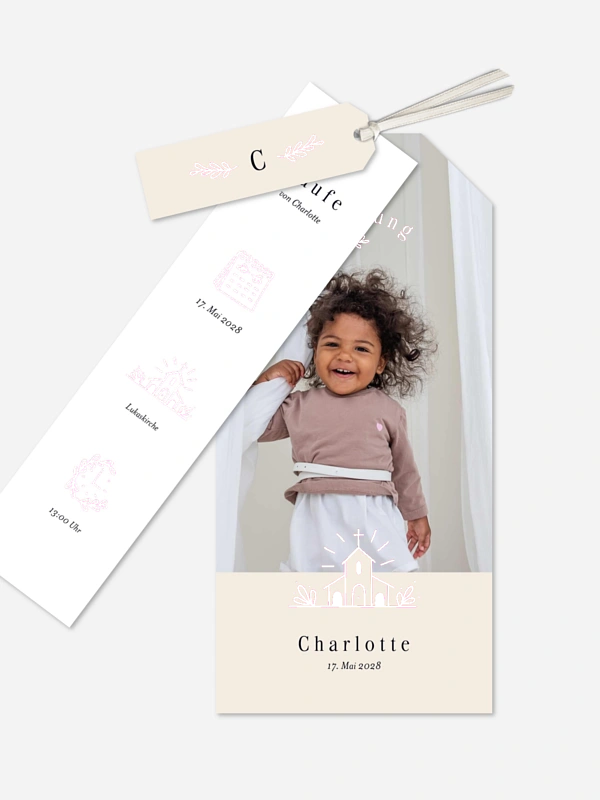 Die Taufeinladung "Little Church" bringt den besonderen Moment eurer Feier ganz warm und liebevoll auf den Punkt. Mit ihrem ruhigen, klaren Design kannst du deine Einladung zur Taufe persönlich gestalten und ganz leicht mit euren wichtigsten Details füllen. Die kleine Kirchen-Illustration sorgt für ein sanftes, festliches Gefühl – genau richtig für diesen Familienmoment. Du gestaltest alles unkompliziert im Tool und lässt dir die hochwertige Karte entspannt nach Hause liefern. Gestalte jetzt deine Einladung ganz in eurem Stil.