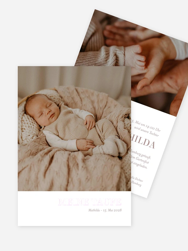 Mit der Taufeinladung "Simple Love" kündigst du das erste große Fest deines kleinen Schatzes auf besonders herzliche und natürliche Weise an. Das cleane Design rückt das Strahlen deines Lieblings ganz ohne Ablenkung in den Fokus und lässt eure gemeinsame Geschichte für sich sprechen.