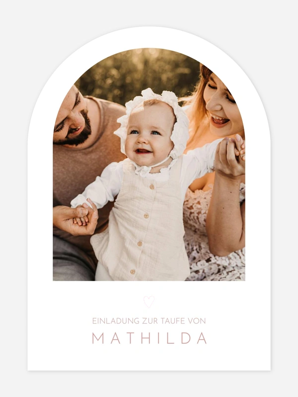 Die liebevoll gestaltete Taufeinladung "Zarte Herzen" bietet dir einen besonders herzlichen Rahmen, um die Taufe deines Schatzes gemeinsam mit deinen Lieblingsmenschen zu feiern. Mit dem großen Foto auf der Vorderseite rückt dein kleiner Sonnenschein direkt in den Mittelpunkt und sorgt bei deinen Gästen garantiert für ein liebevolles Lächeln. Deine persönliche Einladung zur Taufe kannst du mit unserem einfachen Konfigurations-Tool ganz unkompliziert nach deinen Wünschen gestalten und dabei aus hochwertigen Papieren wählen. Wir unterstützen dich dabei, diesen besonderen Moment für immer festzuhalten und bringen deine Karten schnell auf den Weg zu dir. Gestalte jetzt dein Set direkt online.