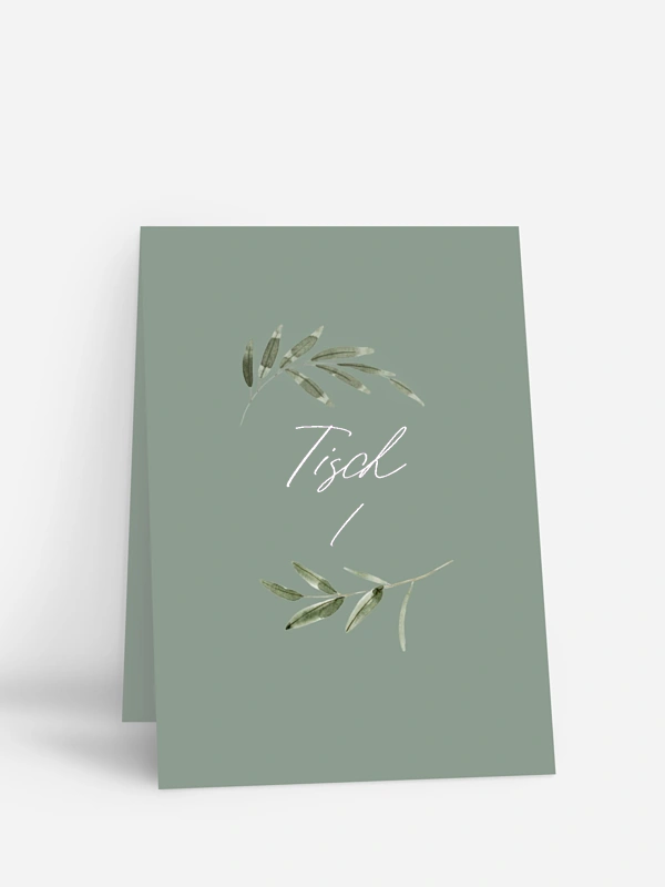 Präsentieren Sie die Tischnummern stilvoll – mit der Tischnummer "Green Dream" im passenden Design zu Ihrer Hochzeitspapeterie.