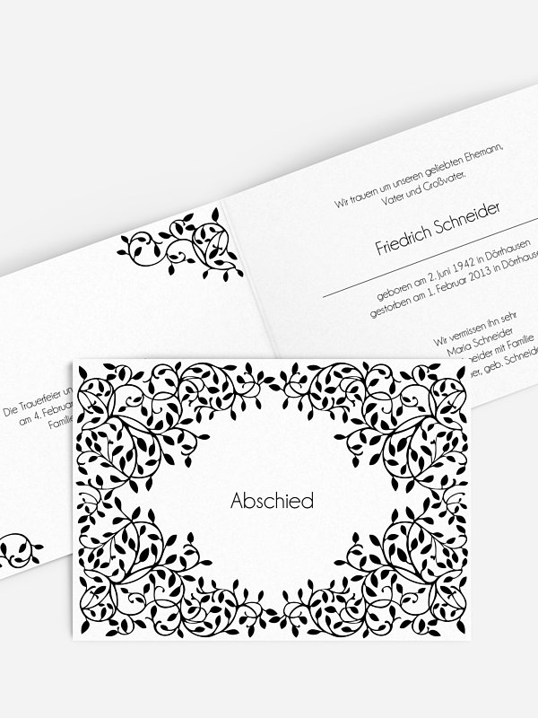 Mit der aufwändig gestalteten Trauerkarte "Romance" gedenken Sie einer geliebten Person in besonderer Weise.