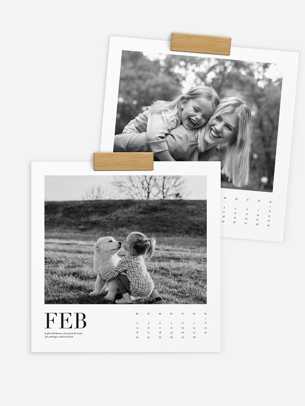 Ein Kalender bringt eure schönsten Momente Monat für Monat an die Wand: Das perfekte Geschenk für Kinder, Großeltern, Partner:in, Freund:innen, Kolleg:innen … oder einfach für dich selbst. Du speicherst deine Lieblingsmomente nur ein einziges Mal – und wählst daraus ganz leicht die schönsten Fotoprodukte für deine Liebsten. Wir schenken dir 10 %, wenn du zwei oder mehr Fotoprodukte* bestellst.