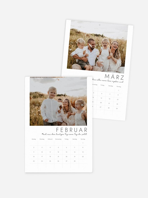 Ein Kalender bringt eure schönsten Momente Monat für Monat an die Wand: Das perfekte Geschenk für Kinder, Großeltern, Partner:in, Freund:innen, Kolleg:innen … oder einfach für dich selbst. Du speicherst deine Lieblingsmomente nur ein einziges Mal – und wählst daraus ganz leicht die schönsten Fotoprodukte für deine Liebsten. Wir schenken dir 10 %, wenn du zwei oder mehr Fotoprodukte* bestellst.