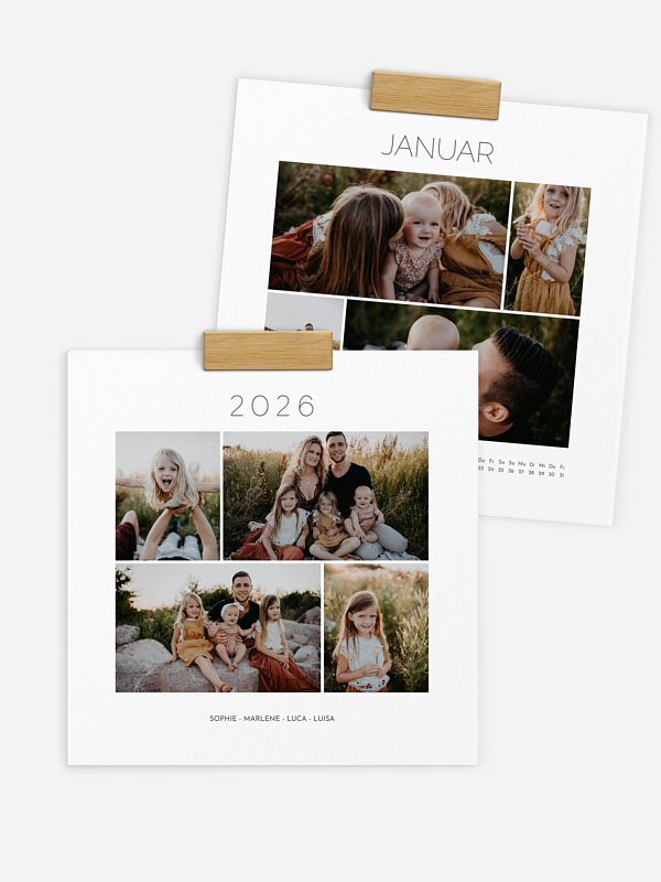 Ein Kalender bringt eure schönsten Momente Monat für Monat an die Wand: Das perfekte Geschenk für Kinder, Großeltern, Partner:in, Freund:innen, Kolleg:innen … oder einfach für dich selbst. Du speicherst deine Lieblingsmomente nur ein einziges Mal – und wählst daraus ganz leicht die schönsten Fotoprodukte für deine Liebsten. Wir schenken dir 10 %, wenn du zwei oder mehr Fotoprodukte* bestellst.