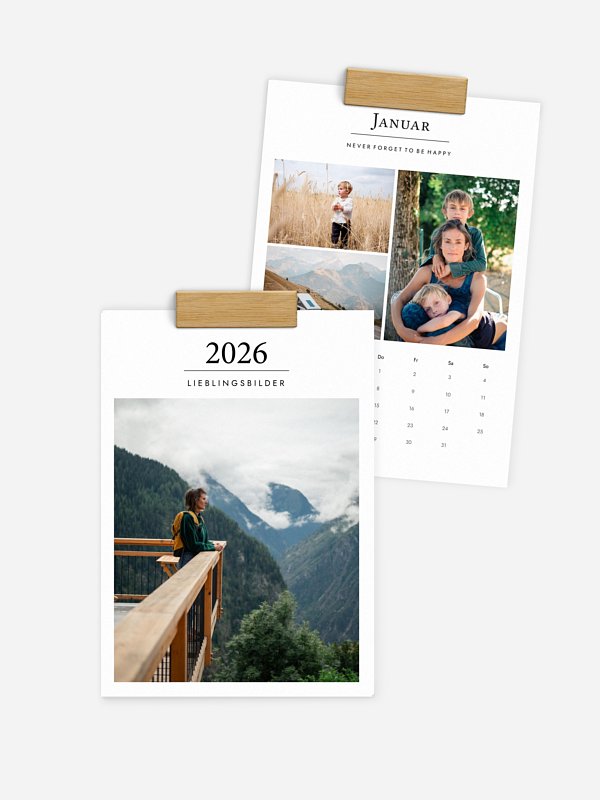 Ein Kalender bringt eure schönsten Momente Monat für Monat an die Wand: Das perfekte Geschenk für Kinder, Großeltern, Partner:in, Freund:innen, Kolleg:innen … oder einfach für dich selbst. Du speicherst deine Lieblingsmomente nur ein einziges Mal – und wählst daraus ganz leicht die schönsten Fotoprodukte für deine Liebsten. Wir schenken dir 10 %, wenn du zwei oder mehr Fotoprodukte* bestellst.