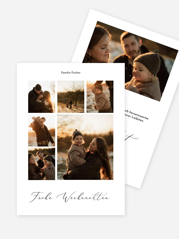 Mit der Weihnachtskarte "Erste Flocken" verschickst du eine herzliche Umarmung auf Papier an all deine Lieblingsmenschen. Das verspielte Design bietet viel Platz für eure schönsten Familienmomente und lässt eure Weihnachtswünsche besonders persönlich wirken.