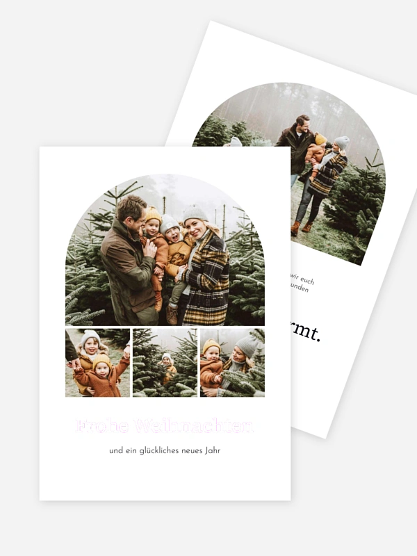 Mit der Weihnachtskarte "Festmomente" verschickst du dieses Jahr eine besonders herzliche Umarmung aus Papier an deine Lieblingsmenschen. Die moderne Anordnung eurer schönsten Familienfotos macht diese Karte zu einer wertvollen Erinnerung, die man sich immer wieder gerne ansieht. Deine individuellen Texte lassen sich dank der einfachen Konfiguration im Gestaltungs-Tool mühelos einfügen. Wir drucken deine Weihnachtswünsche dann auf hochwertigen Papieren, damit deine Post pünktlich und wunderschön bei dir ankommt. Gestalte jetzt dein Set direkt online und bereite deinen Liebsten eine kleine Freude zum Fest.