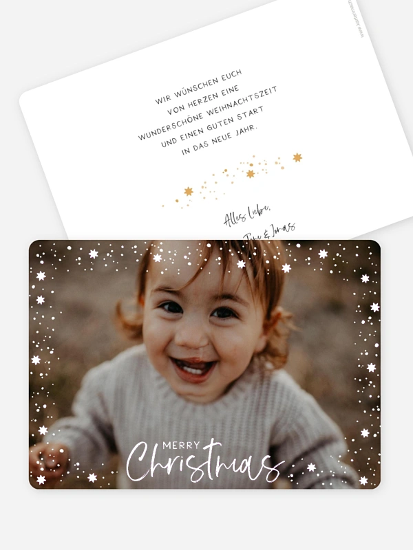 Kaum ein Symbol vermag so sehr den Zauber von Weihnachten einzufangen wie ein funkelnder Stern. Deswegen haben wir unsere Karte "Full of Stars" mit extra vielen Sternchen verziert: für himmlische Festtagsgrüße an alle Lieben.