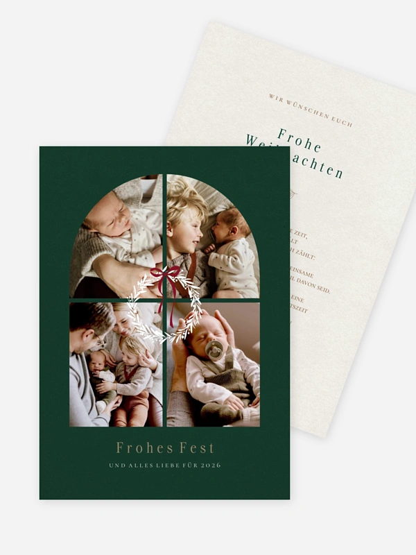 Die Weihnachtskarte "Heimelige Weihnacht" fängt das warme Gefühl von Zuhause ein – voller Nähe, Ruhe und Liebe. Durch das elegante Fensterdesign werden deine schönsten Familienmomente liebevoll in Szene gesetzt. Perfekt, um persönliche Weihnachtsgrüße zu verschicken, die von Herzen kommen. Hochwertig gedruckt und ganz einfach im Gestaltungs-Tool anpassbar – so entsteht im Handumdrehen eine Karte, die so echt und schön ist wie euer Fest.