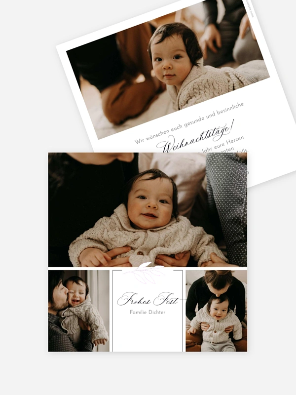 Mit der Weihnachtskarte "Sprig of Joy" verschickst du dieses Jahr eine herzliche Umarmung aus Papier an deine Lieblingsmenschen. Das Design bietet viel Platz für deine schönsten Familienmomente und wird durch feine, botanische Akzente liebevoll abgerundet.
