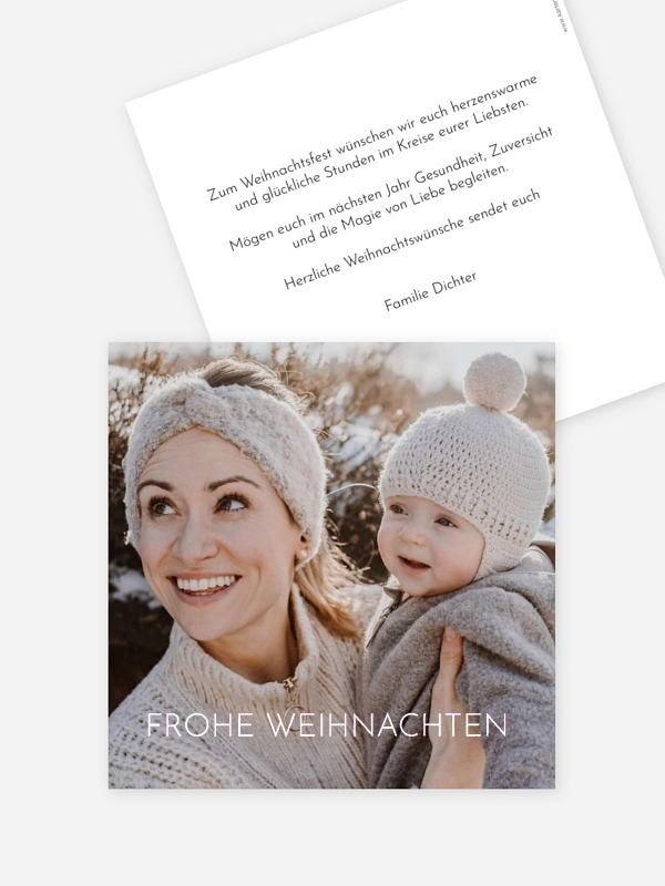 Mit unserer Weihnachtskarte "Sternenblick" kannst du deine liebsten Momente des Jahres auf besonders herzliche Weise mit deiner Familie und deinen Freunden teilen. Das schlichte Design lässt viel Raum für eure persönlichen Fotos und sorgt für eine liebevolle Verbindung zu deinen Lieblingsmenschen. In unserem Gestaltungs-Tool kannst du deine Karten ganz einfach konfigurieren und so ein individuelles Lieblingsstück kreieren, das genau zu euch passt. Wir drucken eure Zeilen auf hochwertigem Papier und garantieren eine schnelle Lieferung, damit eure Post rechtzeitig ankommt. Gestalte jetzt dein Set direkt online.