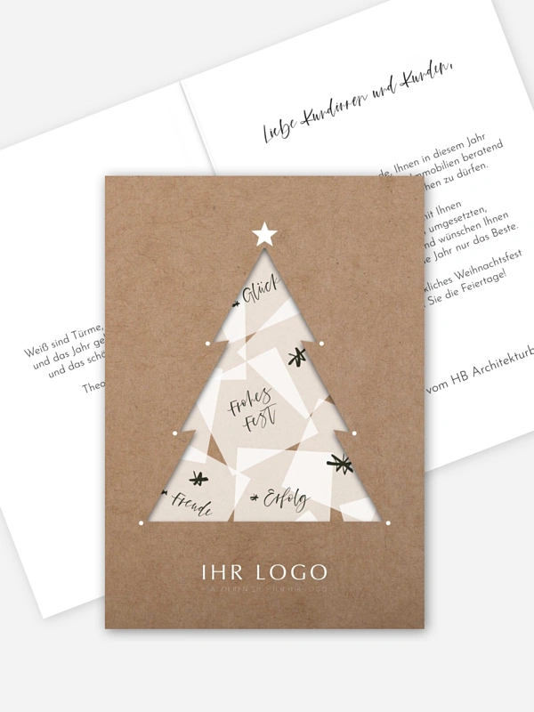 Mit der Karte "Happy Notes mit 3D-Effekt" verschicken Sie die besten Weihnachtspost im minimalistischen Look. Drücken Sie Ihre Wertschätzung für Kunden, Partner und Mitarbeiter mit kunstvoll kombinierten Designelementen aus. Durch partielle Lackveredelung auf dem Weihnachtsbaum entsteht ein eleganter 3D-Effekt, der die Karte zu einem besonderen haptischen Erlebnis macht.