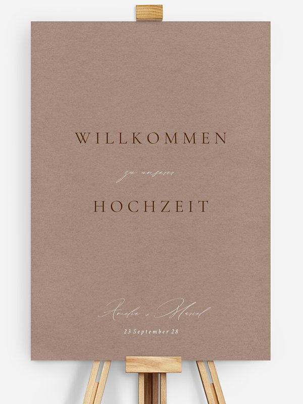 Begrüßen Sie Ihre Gäste stilvoll mit dem Willkommensschild "Mocca Moments". Am Eingang platziert, setzt es den Ton für Ihren Hochzeitstag. Hinweis: Das Schild wird ohne Staffelei geliefert.