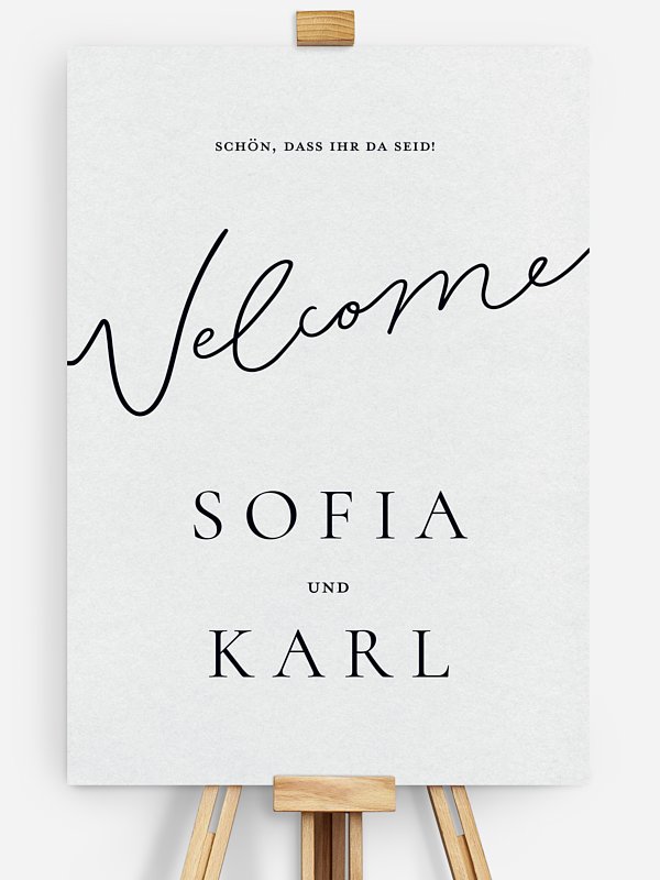 Begrüßen Sie Ihre Gäste stilvoll mit dem Willkommensschild "Zarte Liebe". Am Eingang platziert, setzt es den Ton für Ihren Hochzeitstag. Hinweis: Das Schild wird ohne Staffelei geliefert.