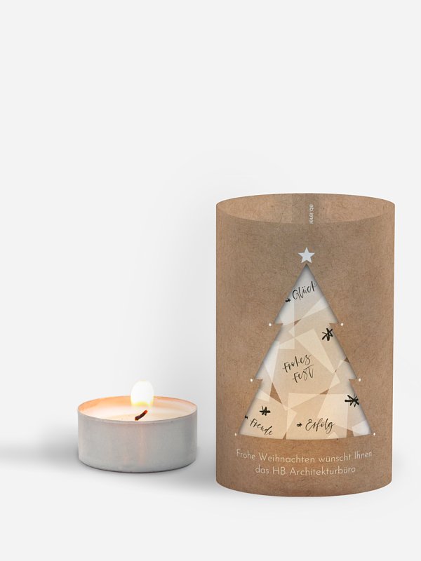 Das Windlicht Weihnachten "Happy Notes mit 3D-Effekt" bringt eine warme, festliche Stimmung in dein Zuhause. Durch das filigrane Tannenbaum-Motiv mit 3D-Effekt entsteht ein wunderschönes Lichtspiel, das jeden Tisch in sanftes Kerzenlicht taucht. Eine liebevolle Idee, um Geschäftspartner:innen, Freund:innen oder Familie eine kleine Freude zu machen. Wie alle Designs kannst du das Windlicht ganz einfach im Gestaltungs-Tool personalisieren – für eine Weihnachtsbotschaft mit Herz.